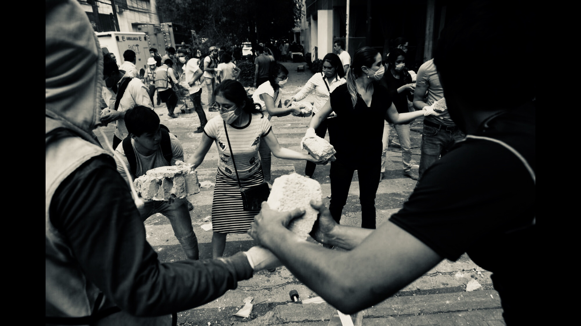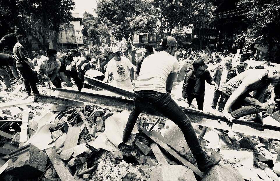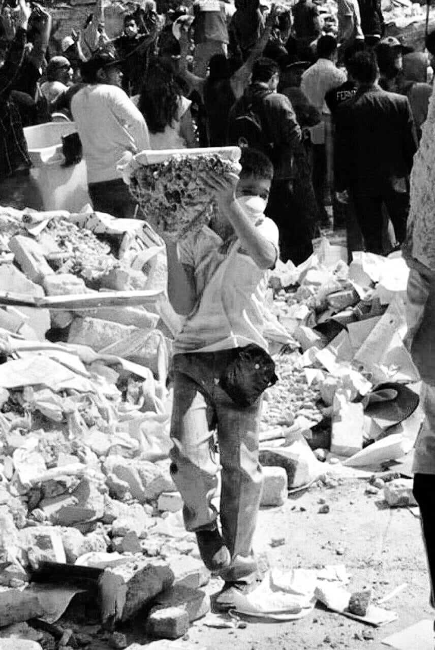 Ahí estábamos los voluntarios. Picando piedra. Removiendo escombros. Acarreando cubetas a los camiones que llegaban, se llenaban, se iban, llegaban más.