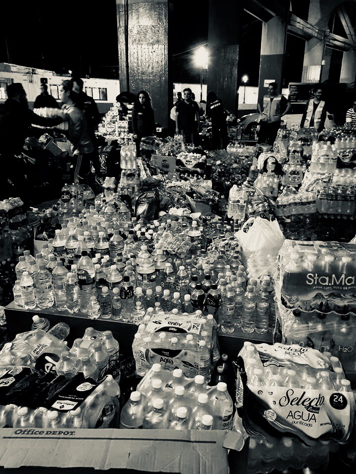 Por la noche los esfuerzos eran más organizados. Estaba, por ejemplo, el centro de acopio improvisado en la esquina de Sonora e Insurgentes. Ahí había de todo. Toneladas de botellas de agua. Pacas de ropa y cobijas. Latas sobre latas sobre latas sobre más latas de comida. Picos. Palas. Gente. Había gente para aventar para arriba y un poco más.