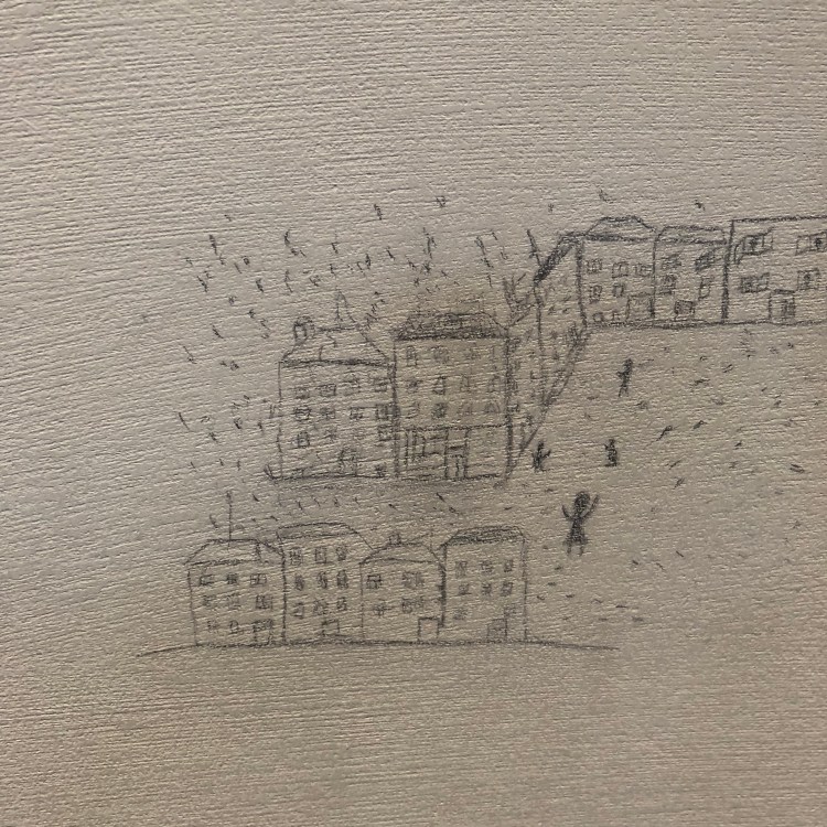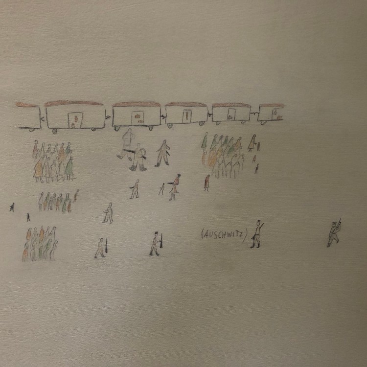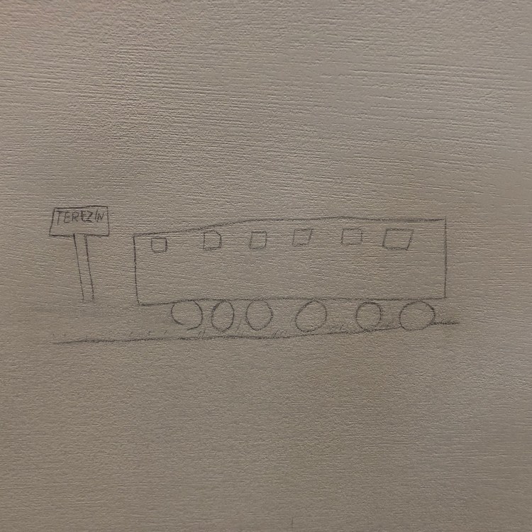 En un bloque vemos pintadas en las paredes réplicas de los dibujos que hacían los niños en Auschwitz y Theresienstadt.