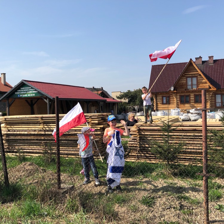 Lo más conmovedor es una pequeña granja casi a la mitad del camino. En ella hay un par de niños polacos. Ondean la bandera de Polonia y la de Israel. Cantan porras en polaco. Nos saludan, nos dan la mano, festejan con nosotros.